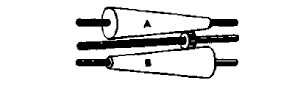 36. Бруски А и В имеют одинаковые сечения и изготовлены из одного и того же материала. Какой из брусков может выдержать больший вес? 1. Оба выдержат одинаковую нагрузку. 2. Брусок А. 3. Брусок В.