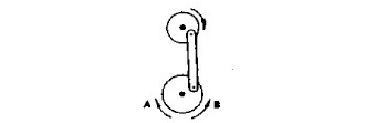 66. Если маленькое колесо будет вращаться в направлении, указанном стрелкой, то как будет вращаться большое? 1. В направлении стрелки А 2. В обе стороны. 3. В направлении стрелки В.