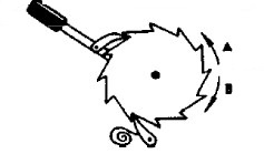 4. В каком направлении будет двигаться зубчатое колесо, если ручку слева двигать вниз и вверх в направлении пунктирных стрелок? 1 Вперед-назад по стрелкам А—В. 2. В направлении стрелки А. 3. В направлении стрелки В.