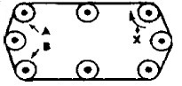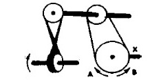 26. Допустим, что нарисованные колеса изготовлены из резины. В каком направлении нужно вращать ведущее колесо (левое), чтобы колесо X вращалось в направлении, указанном пунктирной стрелкой? 1. В направлении стрелки А. 2. В направлении стрелки В. 3. Направление не имеет значения.