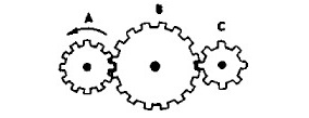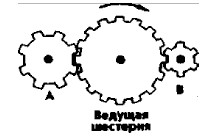 10. Какая из шестерен вращается в том же направлении, что и ведущая шестерня? А может быть, в этом направлении не вращается ни одна из шестерен? 1. Шестерня А. 2. Шестерня В. 3. Не вращается ни одна.