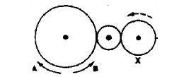 12. Если нижнее колесо вращается в направлении, указанном стрелкой, то в каком направлении будет вращаться ось X? 1. В направлении стрелки А. 2. В направлении стрелки В. 3. В том и другом направлениях.