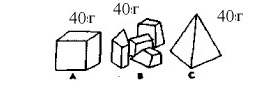 55. Эти тела сделаны из одного и того же материала. Какое из них имеет меньший вес? 1. Тело А. 2. Тело В. 3. Оба тела одинаковы по весу.