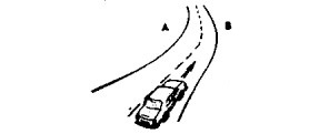 31. В какую сторону занесет эту машину, движущуюся по стрелке, на повороте? 1. В любую сторону. 2. В сторону А. 3. В сторону В.