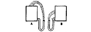 14. В каком направлении будет вращаться вертушка, приспособленная для полива, если в нее пу стить воду под напором? 1. В обе стороны. 2. В направлении стрелки А. 3. В направлении стрелки В.