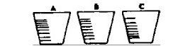 41. На какой емкости правильно нанесены риски, обозначающие равные объемы? 1. На емкости А. 2. На емкости В. 3. На емкости С.