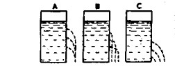 42. На каком из рисунков правильно изображена вода, выливающаяся из отверстий сосуда? 1. На рисунке А. 2. На рисунке В. 3. На рисунке С.