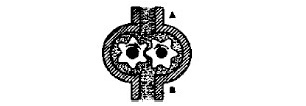 47. В каком направлении будет двигаться вода в системе шестеренчатого насоса, если его шестерня вращается в направлении стрелок? 1. В сторону А. 2. В сторону В. 3. В обе стороны.