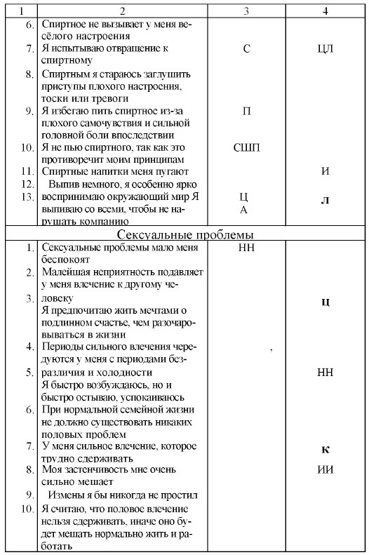 1 Данный, как и следующий по порядку, список суждений включается в методику по желанию отвечающего, если соответствующие проблемы (отношение к спиртным напиткам и сексуальные проблемы) для него актуальны.