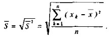 Мы видим, что дисперсия по второй выборке (0,4) значительно меньше дисперсии по первой выборке (3,0). Если бы не было дисперсии, то мы не в состоянии были бы различить данные выборки. Иногда вместо дисперсии для выявления разброса частных данных относительно средней используют производную от дисперсии величину, называемую выборочное отклонение. Оно равно квадратному корню, извлекаемому из дисперсии, и обозначается тем же самым знаком, что и дисперсия, только без квадрата— S: