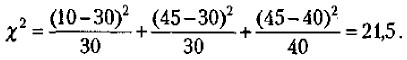 Воспользуемся теперь таблицей 33, где для заданного числа степеней свободы можно выяснить степень значимости образовавшихся различий до и после эксперимента в распределении оценок. Полученное нами значение х2 = 21,5 больше соответствующего табличного значения m - 1 = 2 степеней свободы, составляющего 13,82 при вероятности допустимой ошибки меньше чем 0,001. Следовательно, гипотеза о значимых изменениях, которые произошли в оценках учащихся в результате введения новой программы или новой методики обучения, экспериментально подтвердилась: успеваемость значительно улучшилась, и это мы можем утверждать, допуская ошибку, не превышающую 0,001%.