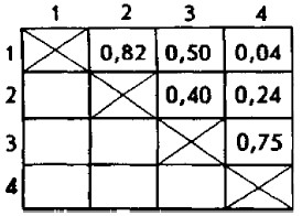 Метод множественных корреляций в отличие от метода парных корреляций позволяет выявить общую структуру корреляционных зависимостей, существующих внутри многомерного экспериментального материала, включающего более двух переменных, и представить эти корреляционные зависимости в виде некоторой системы. Один из наиболее распространенных вариантов этого метода — факторный анализ — позволяет определить совокупность внутренних взаимосвязей, возможных причинно-следственных связей, существующих в экспериментальном материале. В результате факторного анализа обнаруживаются так называемые факторы — причины, объясняющие множество частных (парных) корреляционных зависимостей. Фактор — математико-статистическое понятие. Будучи переведенным на язык психологии (эта процедура называется содержательной или психологической интерпретацией факторов), он становится психологическим понятием. Например, в известном 16-факторном личностном тесте Р. Кеттела, который подробно рассматривался в первой части книги, каждый фактор взаимно однозначно связан с определенными чертами личности человека. С помощью выявленных факторов объясняют взаимозависимость психологических явлений. Поясним сказанное на примере. Допустим, что в некотором психологопедагогическом эксперименте изучалось взаимовлияние таких переменных, как характер, способности, потребности и успеваемость учащихся. Предположим далее, что, оценив каждую из этих переменных у достаточно представительной выборки испытуемых и подсчитав коэффициенты парных корреляций между всевозможными парами данных переменных, мы получили следующую матрицу интеркорреляций (в ней справа и сверху цифрами обозначены в перечисленном выше порядке изученные в эксперименте переменные, а внутри самого квадрата показаны их корреляции друг с другом; поскольку всевозможных пар в данном случае меньше, чем клеток в матрице, то заполнена только верхняя часть матрицы, расположенная выше ее главной диагонали).