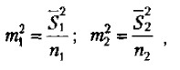 где x1 — среднее значение переменной по одной выборке данных; х2 — среднее значение переменной по другой выборке данных; m1 и m2 — интегрированные показатели отклонений частных значений из двух сравниваемых выборок от соответствующих им средних величин. m1, и m2 в свою очередь вычисляются по следующим формулам: