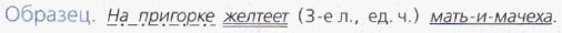 1. Уж голубеют дали. 2. Небеса неожиданно засинели. 3. Солнце золотило горы3. 4. Скоро зазеленеют степи, рощи и леса.4 5. На лугу пестреют яркие цветы. 6. В сумерках розовеют стволы берёз. 7. На солнцепёке по буграм уже темнеют первые проталины. 605. Укажите с помощью глаголов на цвет ромашки, васильков, одуванчиков, травы. Составьте с этими глаголами предложения. Обозначьте лицо и число глаголов. Разберите одно из предложений по членам.