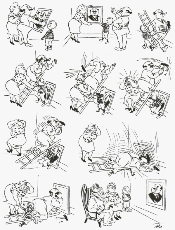 Глагол § 108. РассказКак-то раз, однажды, это случилось, когда..., эта история произошла недавно — так или примерно так нередко начинаются рассказы о каких-то случаях из жизни. 618. Рассмотрите рисунки по сюжету датского художника X. Бидструпа. О каком случае рассказывают эти рисунки? С чего всё началось? Как развивались события? На какой картинке изображён самый острый момент в развитии действия? Чем всё закончилось?