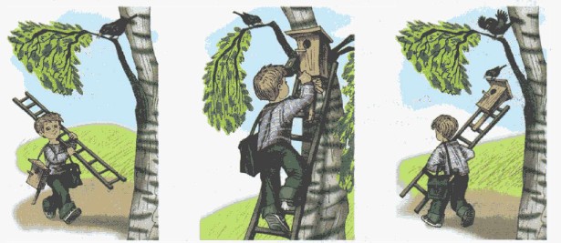 Глагол § 119. Как определить спряжение глагола с безударным личным окончанием (продолжение)673. Запишите глаголы, которые потребуются вам для рассказа по картинкам. Обозначьте спряжение глаголов. Образец.