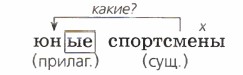 Синтаксис. Пунктуация. Культура речи § 27. Разбор словосочетанияПорядок разбора 1. Назвать главное и зависимое слово, поставить вопрос. 2. Определить, какой частью речи является главное слово. 3. Определить, какой частью речи выражено зависимое слово. 4. Назвать средства грамматической связи (выделить окончание у зависимого слова или окончание и предлог). Образец разбора Юные спортсмены. Устный разбор В словосочетании юные спортсмены главное слово — спортсмены. Спортсмены (какие?) юные. Юные — зависимое слово. Главное слово выражено именем существительным. Зависимое слово выражено именем прилагательным. Связано с главным при помощи окончания. Письменный разбор