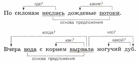 Второстепенные члены предложения поясняют главные или другие второстепенные члены. Второстепенные члены предложения — это дополнения, определения, обстоятельства. 179. Прочитайте, рассмотрите схемы и определите, какие из второстепенных членов поясняют главные, а какие - второстепенные члены предложения. Спишите.