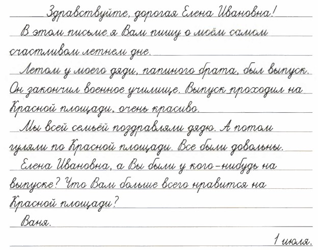 223. Ознакомьтесь с письмом школьника учительнице. О каком событии мальчик подробно рассказывает? О чём он спрашивает, желая получить ответ?