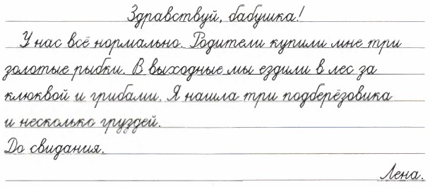 224. Прочитайте письмо девочки. Выражает ли обращение отношение Лены к бабушке? Как можно было бы теплее закончить письмо? Можно ли по этому письму сказать, что девочка откровенна с бабушкой, что Лена хочет поделиться с ней своими мыслями, чувствами?