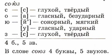 Фонетика. Орфоэпия. Графика. Орфография § 63. Фонетический разбор словаПорядок фонетического разбора 1. Слоги, ударение. 2. Гласные звуки: ударные и безударные; какими буквами обозначены. 3. Согласные звуки: звонкие (в том числе сонорные) и глухие (парные и непарные), твёрдые и мягкие (парные и непарные); какими буквами обозначены. Образец фонетического разбора Союз. Устный разбор В слове союз два слога, ударение падает на второй слог: со-ю́з. Гласные звуки: первый безударный, близкий к [а], обозначен буквой «о»; второй — ударный [й’у], обозначен буквой «ю». Согласные звуки: [с] — глухой, твёрдый; обозначен буквой «эс»;