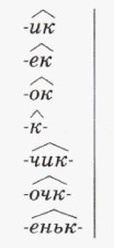 411. Подберите к данным словам однокоренные с суффиксами, имеющими уменьшительно-ласкательное значение. Обозначьте в словах эти суффиксы. Стол, носок, карандаш; сын, голос, флаг, ветер; диван, костюм, карман; конфета, корзина, рыба; кисть, ваза, кофта; свежий, алый, жёлтый, красный.
