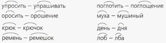 Сравните слова попарно по значению. Найдите варианты морфем в корнях.