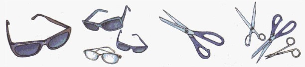 Назовите предметы, изображённые на рисунках. Имеют ли существительные ножницы, очки разные формы для единственного и для множественного числа?