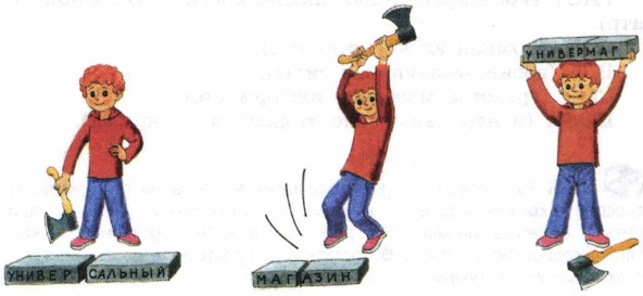 При образовании сложносокращённого слова у сокращаемых слов берутся: а) части, состоящие из нескольких звуков: рыб(оводное) хоз(яйство) → рыбхоз; б) начальные буквы: М(осковский) Государственный) у(ниверситет) → МГУ [эмгэу]; в) начальные звуки: с(троительное) м(онтажное) у (правление) → СМУ [cму]. 220. Прочитайте правильно сложносокращённые слова. Определите, как они образованы. ООН (Организация Объединённых Наций).
