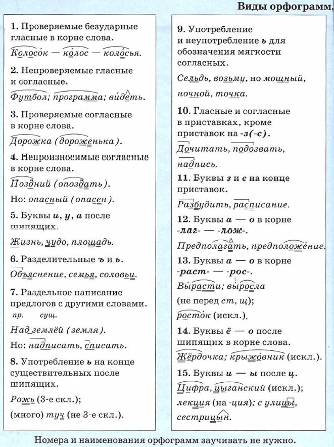 Виды орфограмм. Русский язык 6 класс