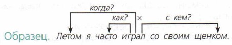 1. Робко разворачиваются маленькие клейкие листочки. 2. Давно прилетели стаи скворцов. 3. По вечерам ребята шумной оравой отправляются на тренировку. 43. Составьте словосочетания. Задайте вопросы от главного слова к зависимому. Запишите эти вопросы. 1. Приближаться, аллея, к; ориентироваться, обстановка, в; нуждаться, поддержка, в; беспокоиться, товарищ, о. 2. Опушка, роща; книга, библиотека, из; обложка, книга; красный, стыд, от; полезный, здоровье, для. 3. Поздним, вечер; проезжая, дорога, по; о, изобретение, великое.
