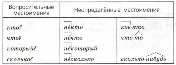 Рассмотрите таблицу. Как образованы неопределённые местоимения?
