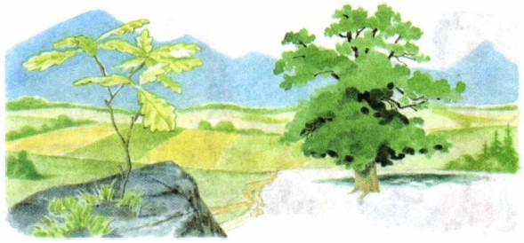 Горный дубок увидал, что под ним в долине тоже стоит дуб, и закричал ему: