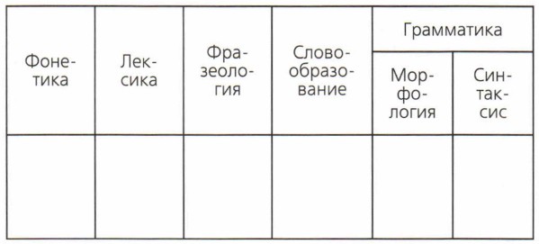В каких разделах науки о языке вы изучали слово с точки зрения звучания, лексического значения, строения и образования, словоизменения, синтаксической роли? 594. Озаглавьте таблицу. Заполните графы названиями единиц языка, которые изучаются в соответствующих разделах.