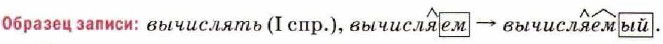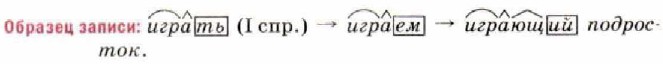 Причастие § 36. Образование причастий. Действительные и страдательные причастия (продолжение)Упр. 420 1. Определите спряжение глагола; запишите форму 1-го лица множественного числа настоящего времени и от этой глагольной основы образуйте действительные причастия настоящего времени. Записывая слова, разбирайте их по составу. Употребите причастие с определяемым словом.