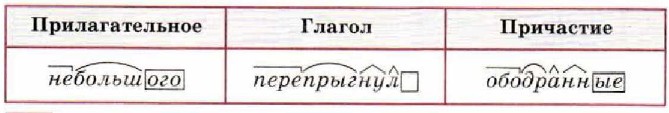 2. Вслух прочитайте каждое словосочетание. Устно измените форму мужского рода краткого причастия на форму женского рода. Проследите, как меняется ударение в выделенных кратких причастиях. Сделайте вывод. Упр. 444 1. Спишите текст, вставляя пропущенные буквы и знаки препинания. Вдруг что-то шлёпнуло раз и другой поср..ди тихой зав..ди и я увидел голову вынырнувш.. вы́дры плывущ.. к берегу меж недвижных кувшин..к. С живой пойманн.. рыбой во рту выдра плыла к густому кустарн..ку, которым был покрыт берег. (И. Соколов-Микитов) 2. Выпишите из текста имена прилагательные, глаголы и причастия, распределяя их по графам таблицы. Разделите каждое слово на морфемы.