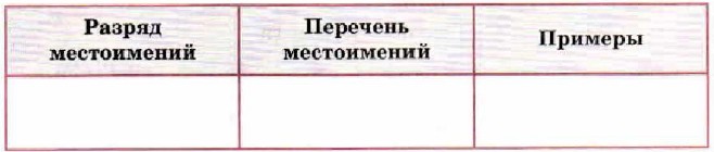 1) описание кошки и собаки на первом рисунке; 2) рассказ о «коварном» замысле кошки, с виду такой симпатичной; 3) неожиданный исход кошачьих действий, недоумение разбуженного грохотом пса; 4) мораль (поучительный вывод) из описанной сценки. Постарайтесь употребить в рассказе местоимения (она, в этом рассказе, какая коварная, у неё и др.). 2. Подчеркните в своём сочинении местоимения как члены предложения; укажите разряд использованных вами местоимений. Упр. 723. Учимся собирать и систематизировать информацию Используя материалы § 56—64, заполните таблицу и на её основе составьте сообщение на тему «Разряды местоимений». Составьте по два предложения с местоимениями каждого разряда и запишите их в третью графу таблицы.