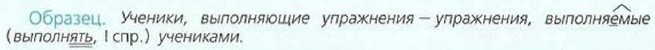 Уважа..мый (коллектив), изуча..мый (школьники), ободря..мый (товарищ), обурева..мый (жажда деятельности), приготовля..мые (школьник), приглаша..мый (собрание), оберега..мый (сырость), движ..мый (чувство сострадания). 120. Выразите мысль более сжато. Для этого замените сложное предложение простым с причастным оборотом по образцу. Если нужно, измените падеж зависимого слова в причастном обороте. После такой замены афоризм будет употреблён в той форме, какую использовал его автор. Подчеркните причастные обороты как члены предложения. Расставьте запятые. Обозначьте суффиксы причастий. Над действительными причастиями надпишите букву д., над страдательными — с. Образец. Твёрдая воля-это победа, которая ежеминутно одерживается над инстинктами, над влечениями. (По О. Бальзаку) - Твёрдая воля - это ежеминутно одерживаемая победа над инстинктами, над влечениями. (О. Бальзак) 1. Упрямство есть слабость, которая имеет вид силы. (По В. Жуковскому) 2. Скромность, которая хвастается своей скромностью,— это уже не скромность, а высокомерие... (По И. Бехеру) 3. Честь — это награда, которая присуждается за добродетель. (По Аристотелю) 4. Совесть — это память общества, которую усваивает отдельное лицо. (По Л. Толстому) 121. Замените действительные причастия страдательными и запишите получившиеся выражения. Обозначьте условия выбора букв е и и в суффиксах причастий -ем- и -им-.
