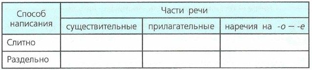 (По А. Гайдару) 247. Заполните по образцу таблицу «Не с существительными, прилагательными и наречиями на -о и -е» своими примерами, обозначая в них условия выбора слитного или раздельного написания не. • Составьте два сложных предложения.