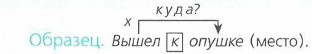 В..поминать полёт, в..поминать о полёт..; гов..рить ему, г..ворить (с)ним; наблюда..м восход солнца, наблюда..м за облаками; смотр..м в и(л, лл)юминатор, любу..мся пейзаж..м; произве..ти поса..ку, окончить полёт; пр..ставить трап, спустит..ся по трапу. 327. Составьте словосочетания с главным словом - глаголом ездить, подобрав к нему подходящие по смыслу имена существительные; используйте для связи слов предлоги (на чём? в чём? с чем?). Предлоги выражают различные отношения, например: временные (приехать под вечер), причинные (не приехать из-за болезни), пространственные (приехать в город), целевые (приехать для переговоров) и др. 328. Сгруппируйте словосочетания по значению предлога: 1) с временным значением; 2) с пространственным значением; 3) с причинным значением. Зависимость слов обозначьте по образцу. Предлоги заключите в прямоугольник.