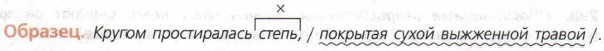 В страшную жару Аносов возвращался по иртышской долине в Омск. На тройке крепких выносливых коней он ехал по правому берегу могучей сибирской реки воспетой народом. Кругом простиралась степь покрытая сухой выжженной травой. Только там, где поблёскивали освежающие речонки бегущие к Иртышу зеленели густые травы шумели заросли крыжовника чёрной смородины диких роз. Золотились на солнце пахучие целебные цветы раскачивались жёлтые чашечки лютиков. Вдоль военной линии на пути к Омску то и дело встречались безмолвные, пыльные казачьи станицы. В тени у ворот лежали неподвижные псы истомлённые жарой; они не лаяли и провожали тройку сонными глазами. Над степью простиралась тяжёлая духота; до самого светло-голубого горизонта ни зелёного листочка ни свежего стебелька. На опалённой равнине внезапно3 возникали и двигались медленно и грузно огромные песчаные столбы, которые затмевали и солнце и голубизну застывшего эмалевого* неба. Аносов невыносимо страдал от зноя и жажды. Кружилась голова, темнело в глазах, и, казалось, конца не будет мукам от нестерпимой духоты. Мелкая горячая пыль висела в воздухе. Среди голой необозримой равнины то там то здесь чернели юрты казахов, изредка3 тянулись веренйцы верблюдов оглашая раскалённую пустыню унылым звоном колокольчиков. Проскачет быстрый всадник, и снова пустынно вокруг... 292. Спишите текст, расставляя пропущенные запятые. Подчеркните обособленные определения, выраженные причастными оборотами. Найдите остальные причастные обороты. Почему они не обособлены?