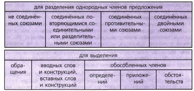 271. На основе материалов данной таблицы расскажите об употреблении запятой в простых предложениях. Для иллюстрации используйте свои примеры. Запятая ставится