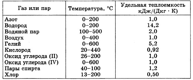 Удельная теплоемкость газов и паров при нормальном атмосферном давлении