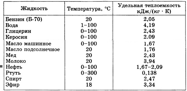 Удельная теплоемкость жидкостей при нормальном атмосферном давлении