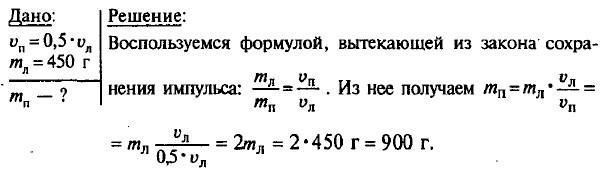 218. Большую скорость приобретет левая лодка, так как ее масса меньше, чем масса лодки с мальчиком. К тому же у нее меньше сопротивление движению со стороны воды, ведь она двигается носом вперед, а правая — кормой вперед. <<< К началу Решения (окончание) >>>