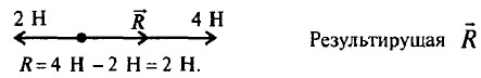 377. Рис. 86. R=F1 + F2 = 25 Н + 50 Н = 75 Н (обе силы направлены в одну сторону: вниз). Рис. 87. R = F2 - F1 =90 Н - 30 Н = 60 Н (силы направлены в противоположные стороны). 378.