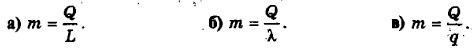 10. Увеличится или уменьшится относительная влажность воздуха, если при той же абсолютной влажности температура понизится? а) Уменьшится. б) Увеличится. в) Не изменится. 11. Какое из названных явлений сопровождается поглощением энергии? а) Конденсация пара на крышке кастрюли с горячей водой. б) Образование вечером тумана на лугу возле речки. в) Высыхание вымытой тарелки. 12. Для какого процесса — испарения или кипения жидкости — необходим внешний источник энергии? а) Для испарения. б) Для кипения. в) Ни для какого: расходуется внутренняя энергия жидкости. 13. Чтобы закипела медь, нужно довести ее температуру до 2567 °С, а температура кипения свинца 1740 °С, железа 2750 °С. У какого из этих металлов силы притяжения его молекул друг к другу наименьшие? а) У меди. б) У свинца. в) У железа. 14. Если известно затраченное на испарение жидкости количество теплоты Q, то какой формулой следует воспользоваться для нахождения массы образовавшегося пара?