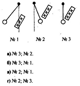4. При поднесении к шарам, подвешенным на нитях, наэлектризованной палочки они расположились так, как показано на рисунке. Какой из шаров не наэлектризован, какой имеет тоже положительный заряд?