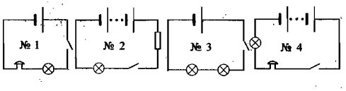 а) № 1. б) № 2. в) № 3. г) № 4. 9. Какая из электрических цепей, схемы которых показаны на рисунке, работать в изображенный момент не будет?