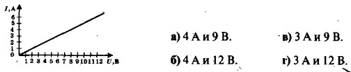 Электрические явления. Часть 2 Зависимость силы тока от напряжения. Электрическое сопротивление проводников1. Как электрический ток зависит от напряжения? а) Чем больше напряжение, тем больше сила тока. б) Чем больше напряжение, тем меньше сила тока. в) Сила тока прямо пропорциональна напряжению. г) Сила тока не зависит от напряжения. 2. Определите по графику зависимости силы тока от напряжения, какова сила тока в проводнике при напряжении 6 В и при каком напряжении сила тока в нем станет равной 6 А.
